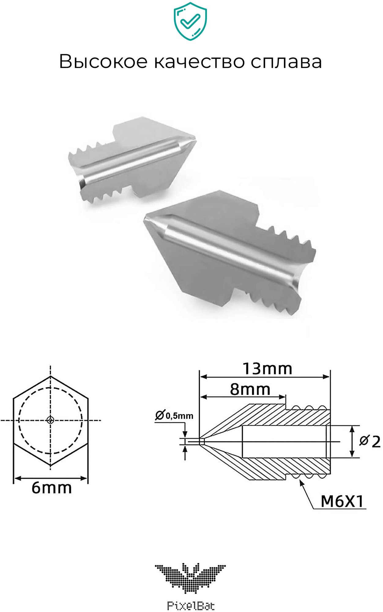 | Плюсы: | Отличное сопло. Подошло на Wanhao. Меньше родного, но работает нормально; нет внутренней трубки ("термобарьера" или чего там), просто узкий канал – нормально работает. После убитого родного так вообще отлично. |