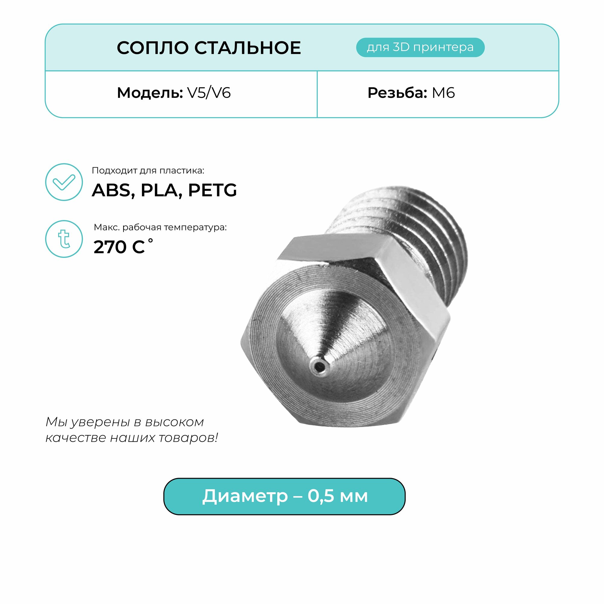 СохранитьСопло стальное 0.5мм, комплектующие для 3D принтера, V5/V6 интересное: