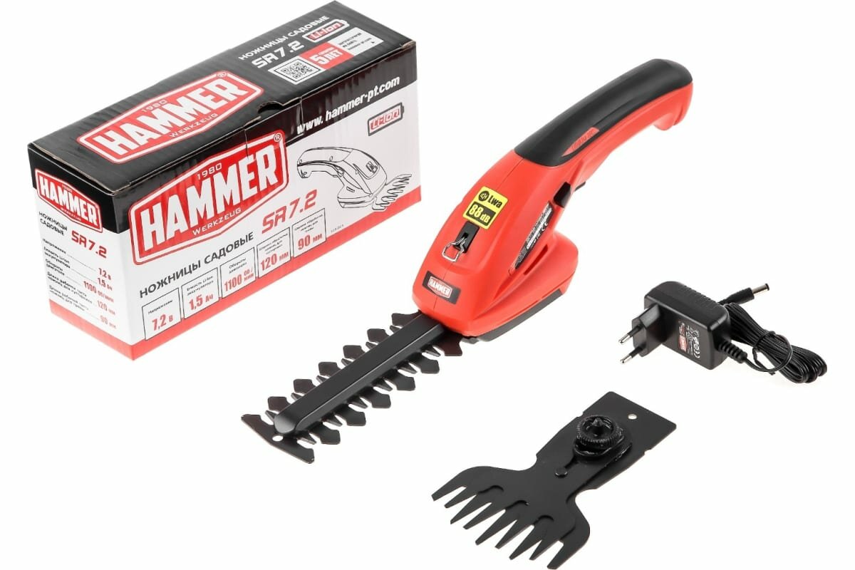 Купить Аккумуляторные ножницы Hammer 7.2В li-ion, нож для веток 120/8мм, нож для травы 90мм SR7.2