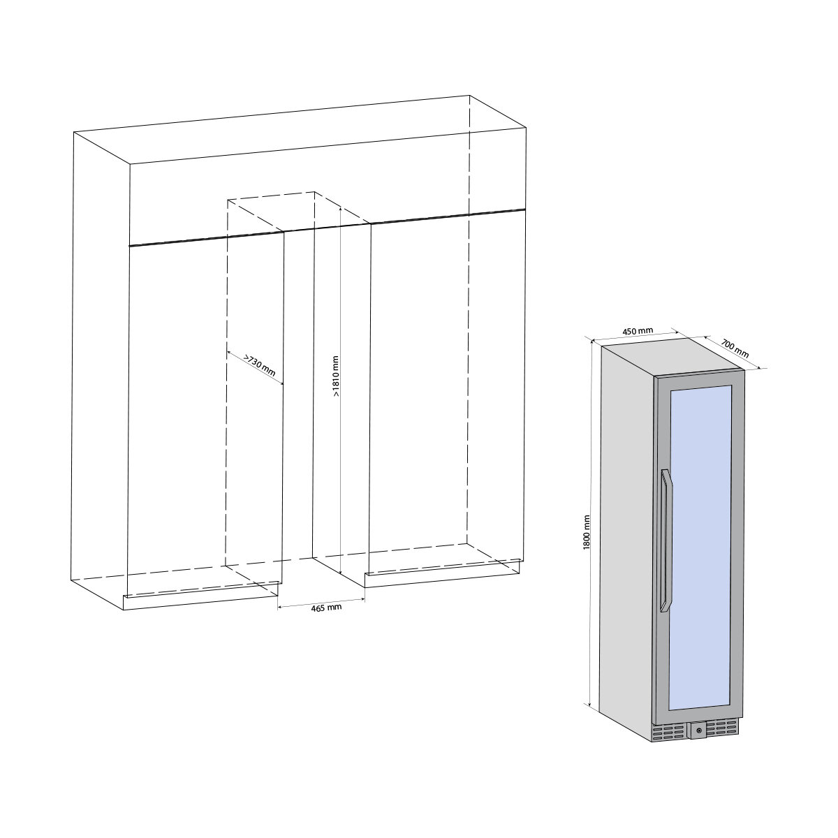 | Емкость винного шкафа, бут. | 105 |