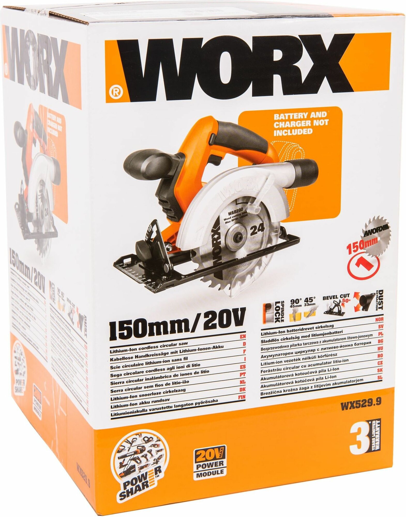 Дисковая пила аккумуляторная WORX SAW WX529.9, 150 мм, 20 В, без АКБ и ЗУ, коробка