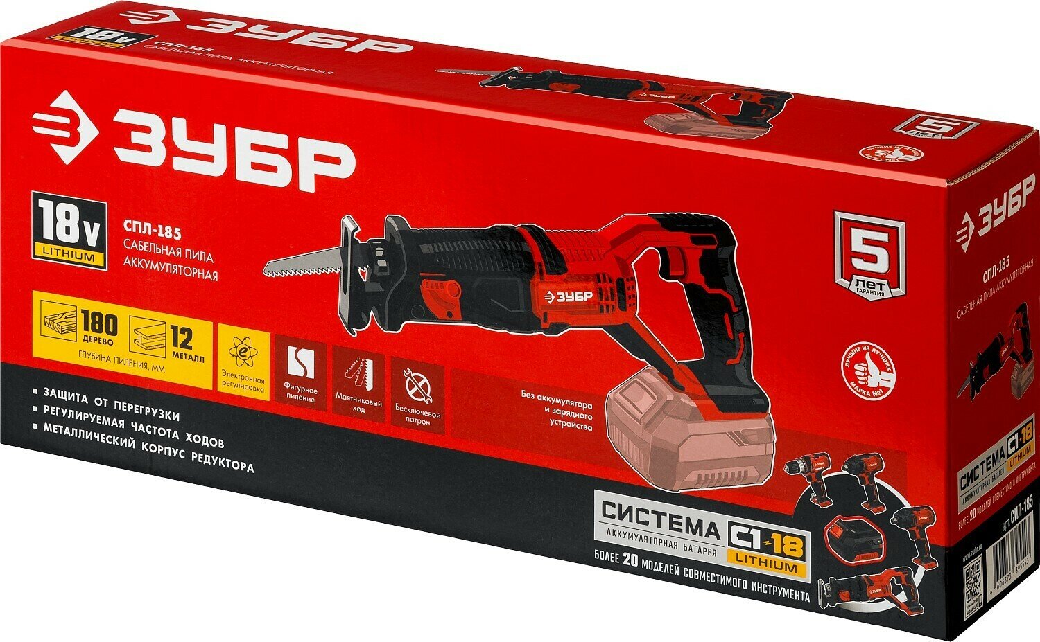 ЗУБР СПЛ-185 18В, без АКБ, в коробке, пила сабельная интересное: