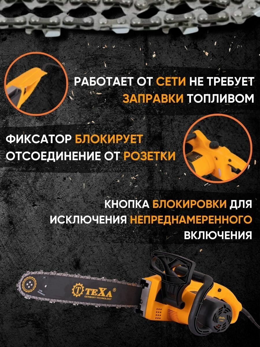 Электропила цепная TEXA 2400 Вт, пила электрическая для дачи и сада, в подарок очки и перчатки интересное: