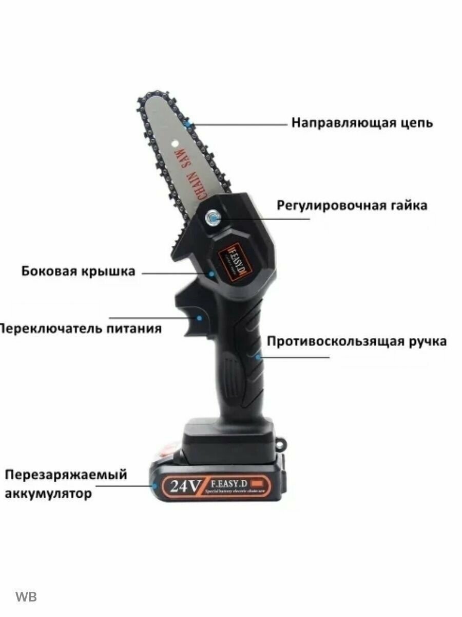 Мини пила электрическая 24 V цепная аккумуляторная ручная 550Вт, Портативная беспроводная бензопила, Ножовка строительная интересное: