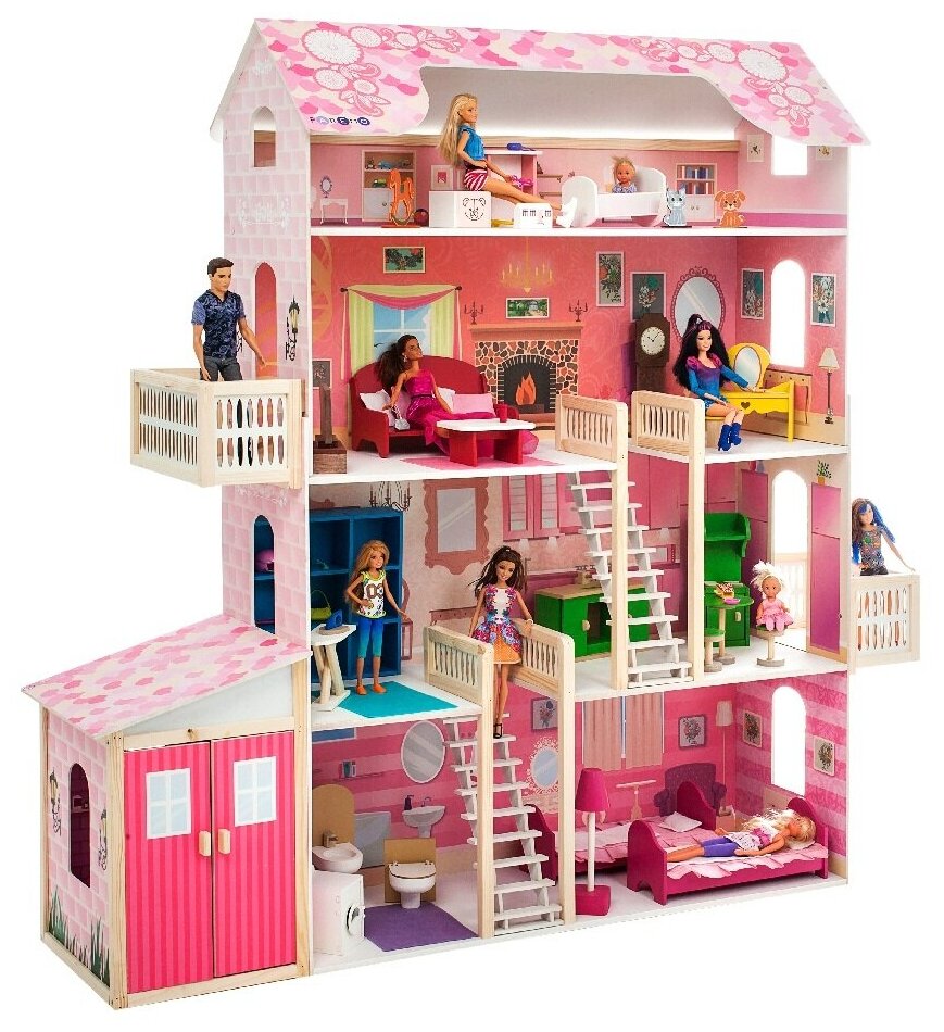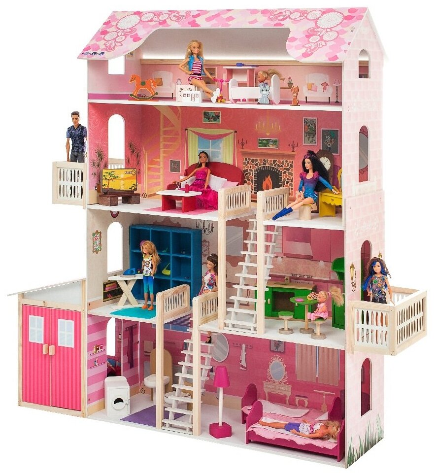 | Минусы: | 1. На задней панели домика повторяющиеся рисунки, т.е. одни и те же комнаты на разных этажах (лучше бы просто покрасили краской);