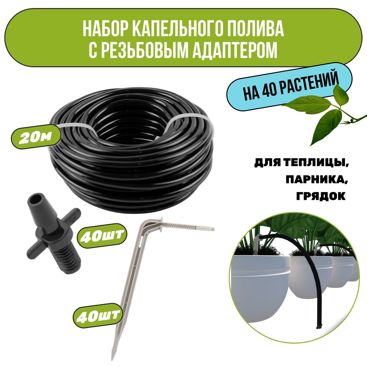 Набор капельного полива на 40 растений для парника, теплицы, грядок, с резьбовым адаптером интересное: