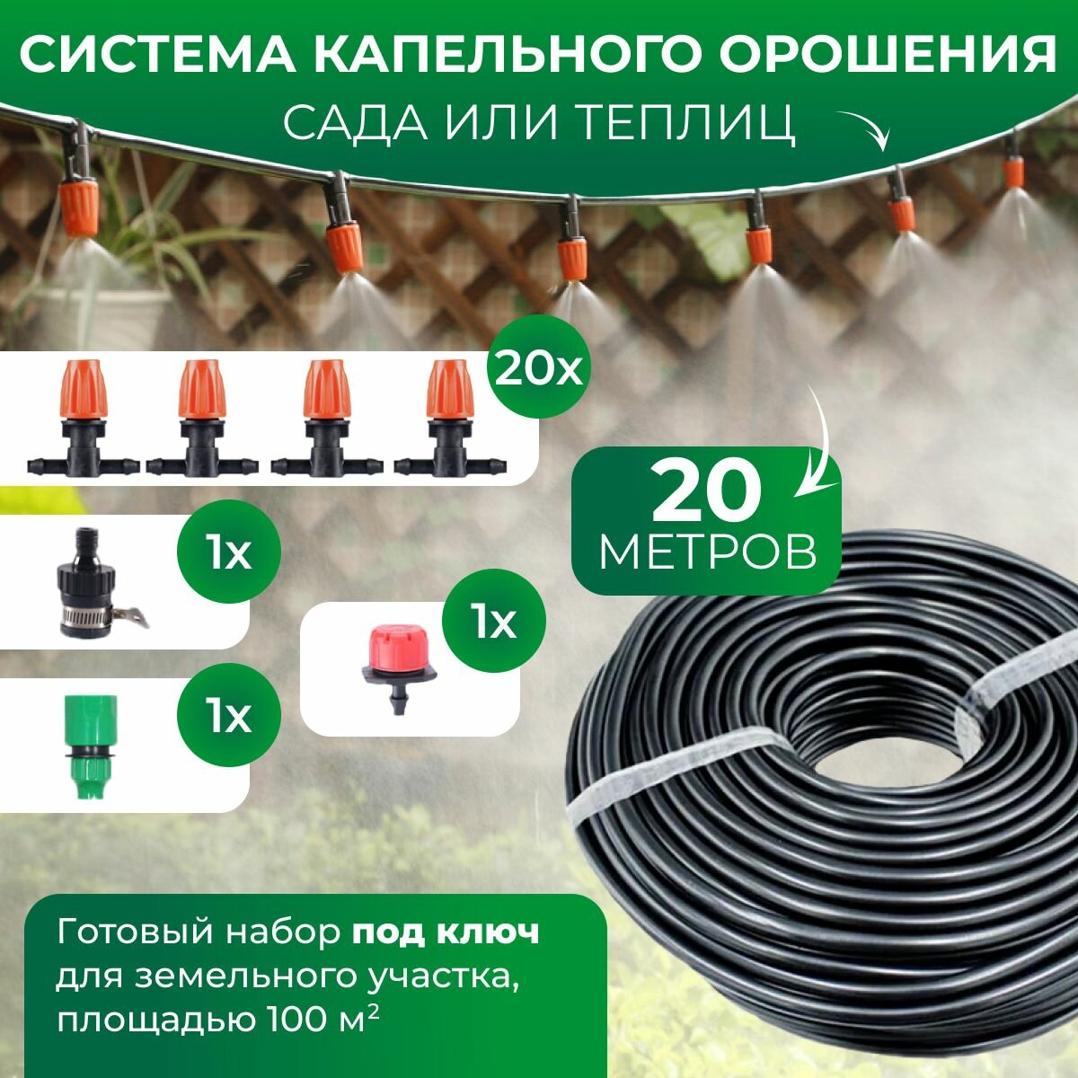 Купить Система капельного полива и орошения для сада и теплиц 20 метров, 21 , грядок, растений,