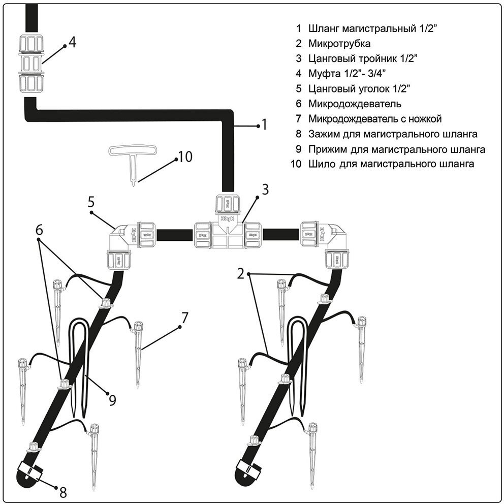 Купить Комплект для микродождевого полива кустарников и деревьев Жук, 20 растений