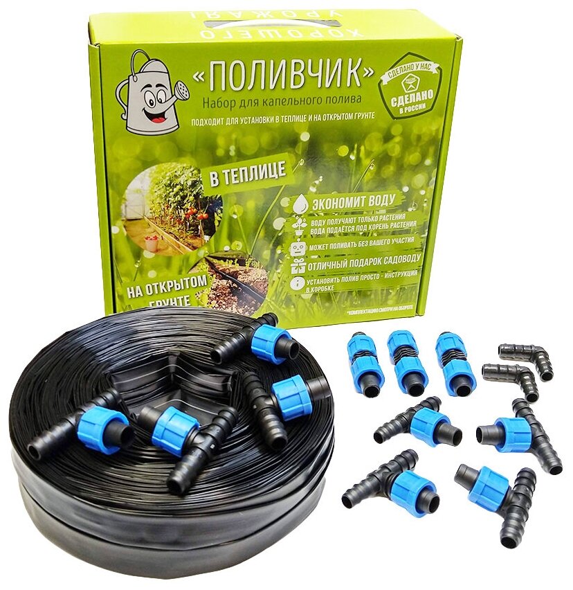 | Комплектация | капельная лента - 100 м, тройник - 9 шт, угловой фитинг - 2 шт, ремонтный фитинг - 3 шт |