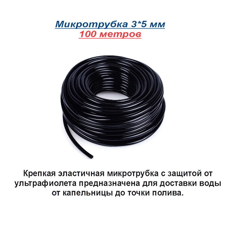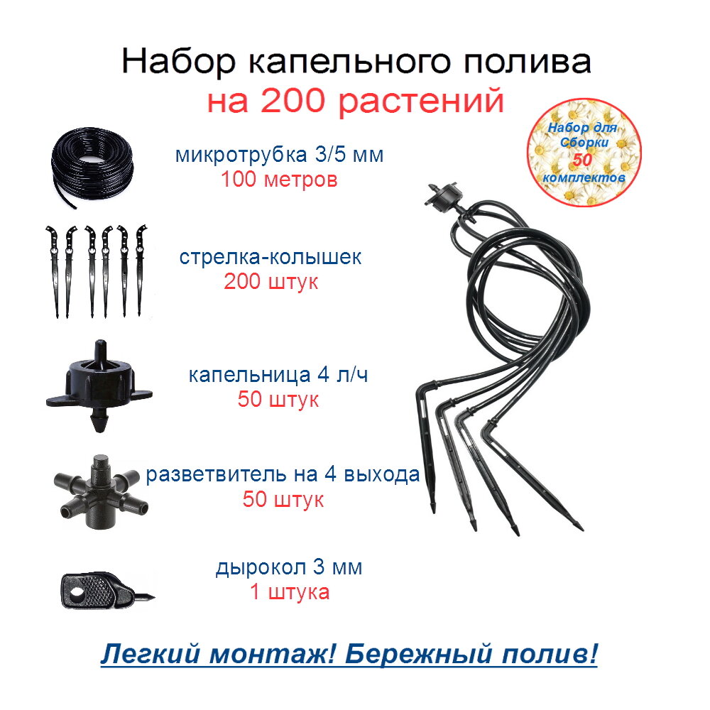 Набор для капельного полива на 200 растений: микротрубка 3х5 мм, капельница компенсированная 4 л/ч, стрелка-колышек интересное: