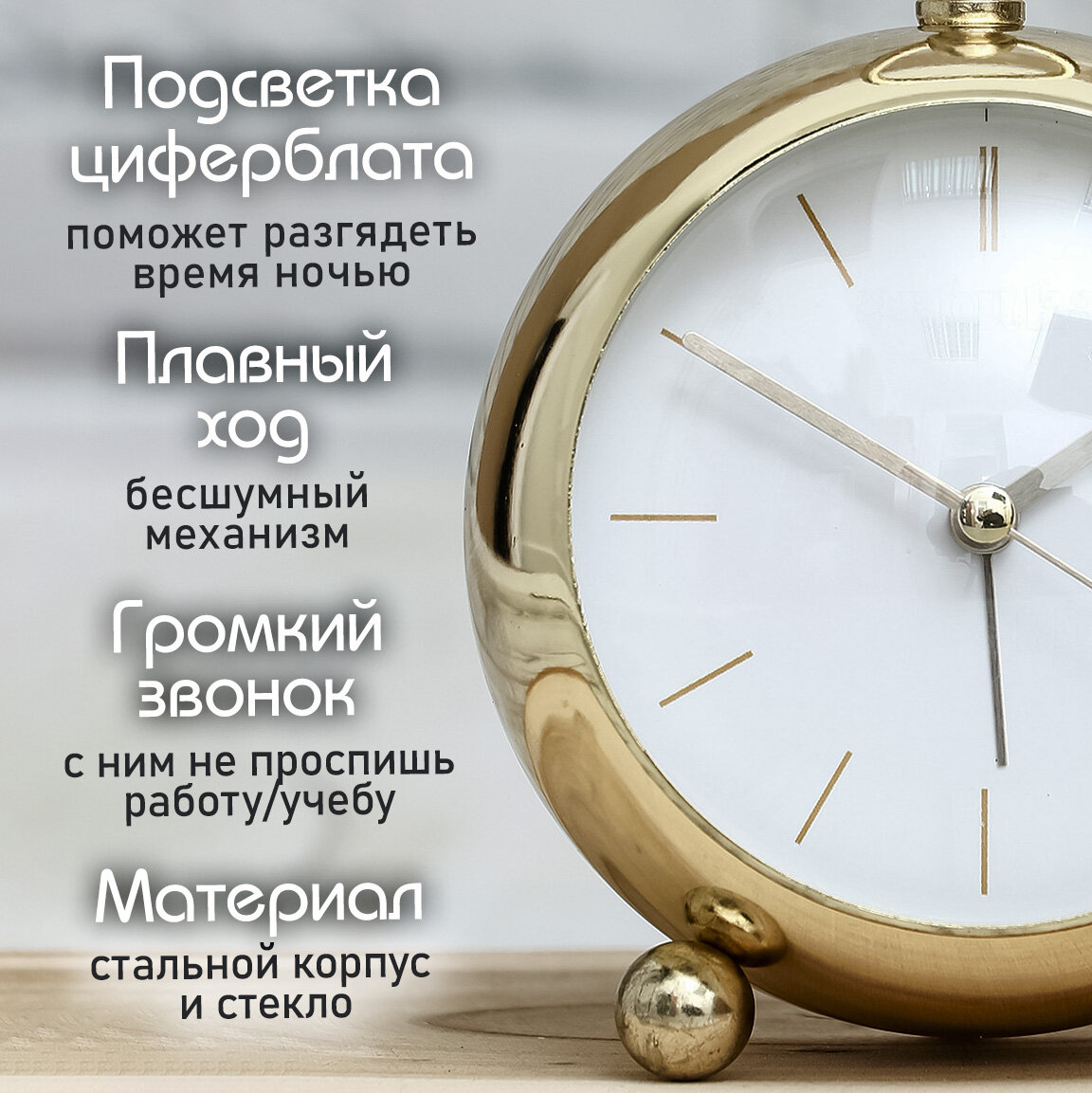 Купить Часы будильник металл Кругляш золото классические настольные подарок женщине, мужчине, ребенку