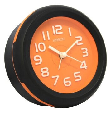 Классический настольный будильник MIRRON GH649 ЧО/Часы в спальню/Круглый будильник/Часы для детской/Чёрно-оранжевый цвет