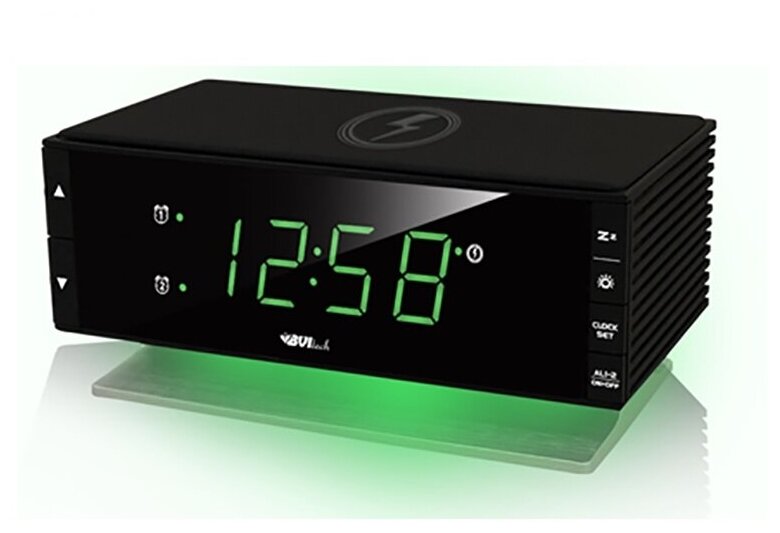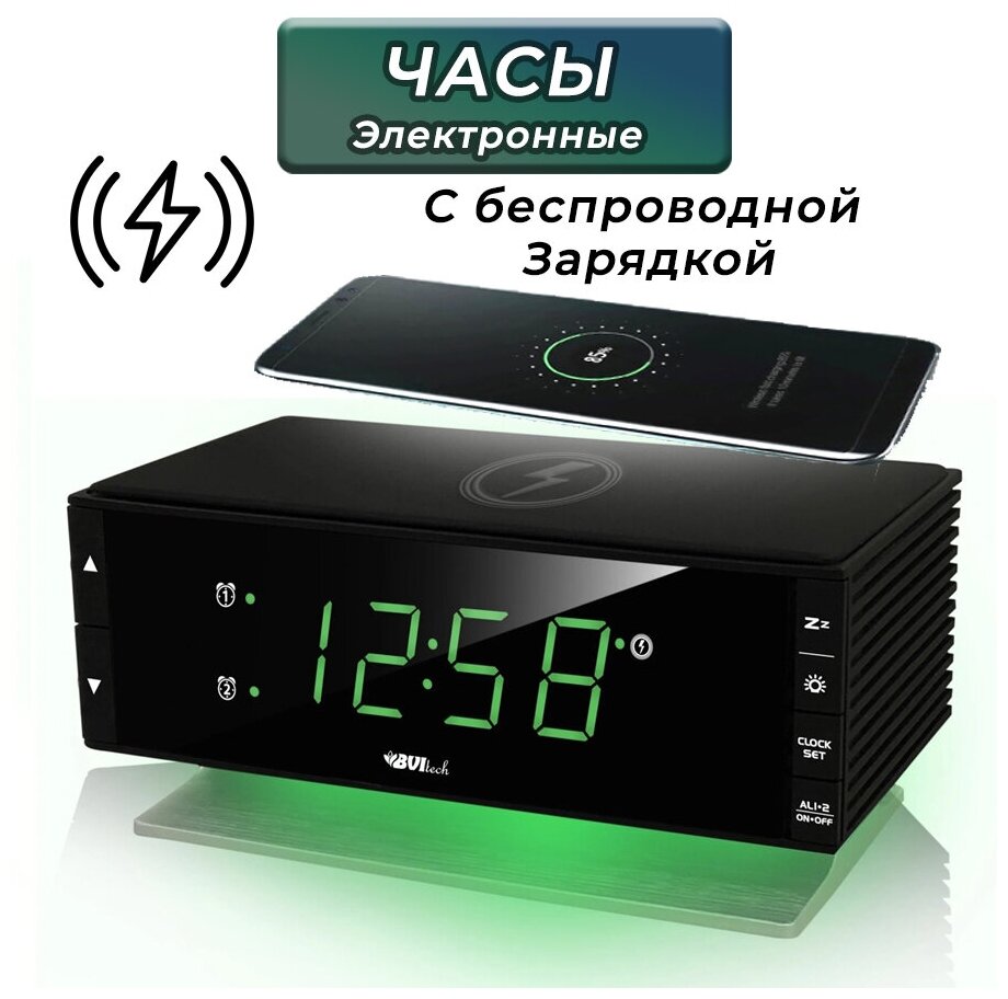 Купить BV-433GKQ BVItech часы сетевые (зеленый/черный) С БЕС проводной зарядкой мобильных устройств