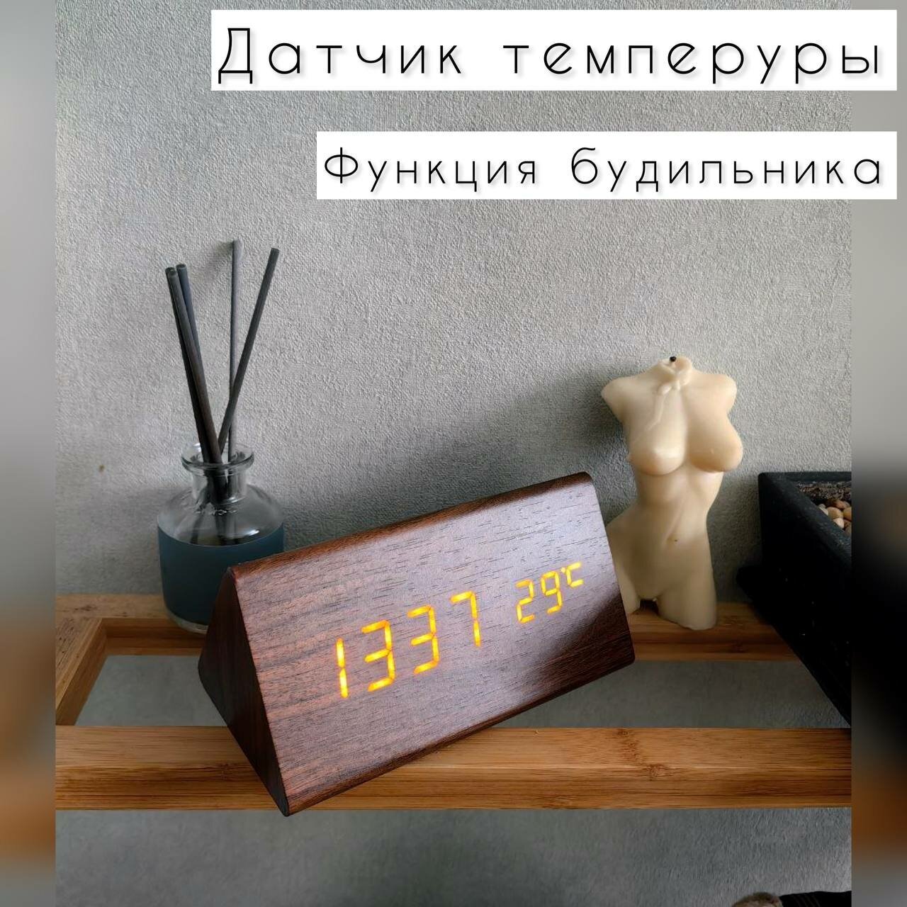 Настольные электронные часы под дерево интересное: