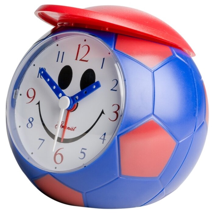 Будильник футбол гранат CS-11 красно-синий цвет в форме мяча размер 9х9 см интересное: