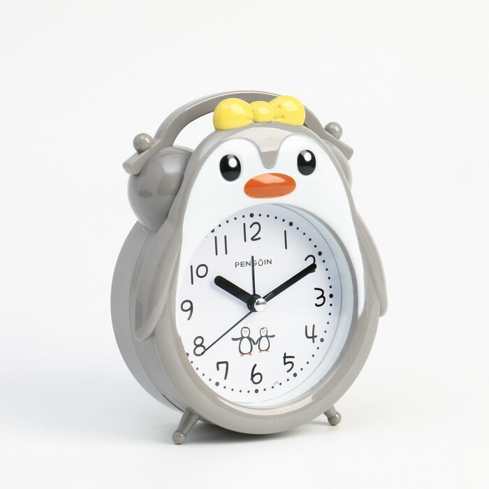 Купить Будильник "Пингвин", дискретный ход, 15.5 x 13 x 5.6 см, АА, серый