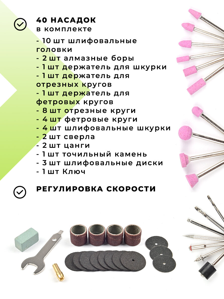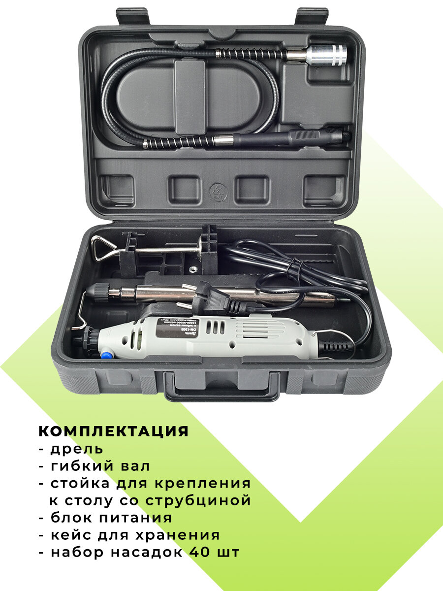 Гравер DM-130B с гибким валом 10000-32000 об/мин 135Вт + насадки 40шт интересное: