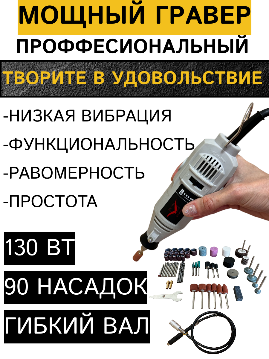 Гравер электрический с гибким валом и насадками 90 шт. интересное: