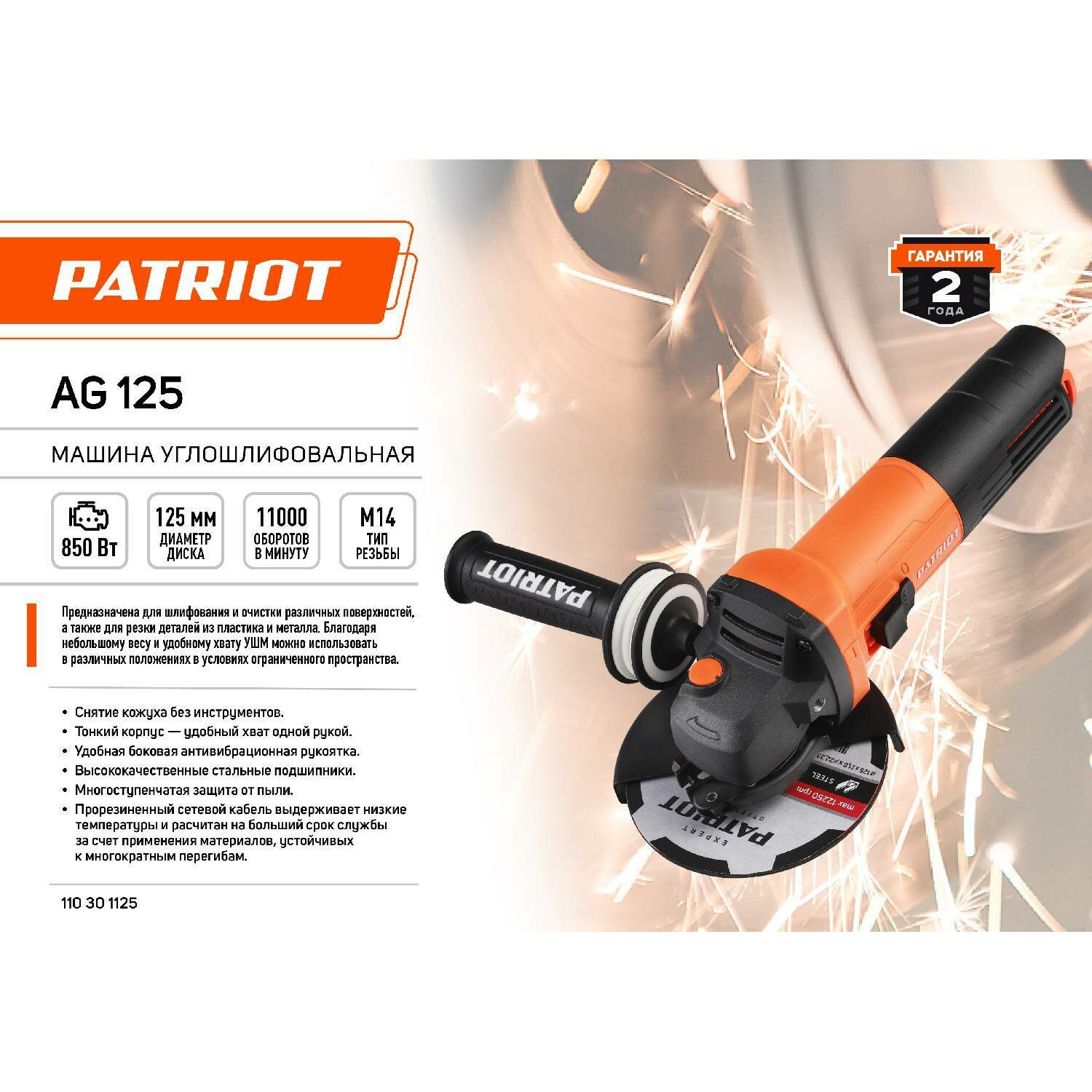 Машина шлифовальная угловая PATRIOT AG 125 Диск 125 мм интересное: