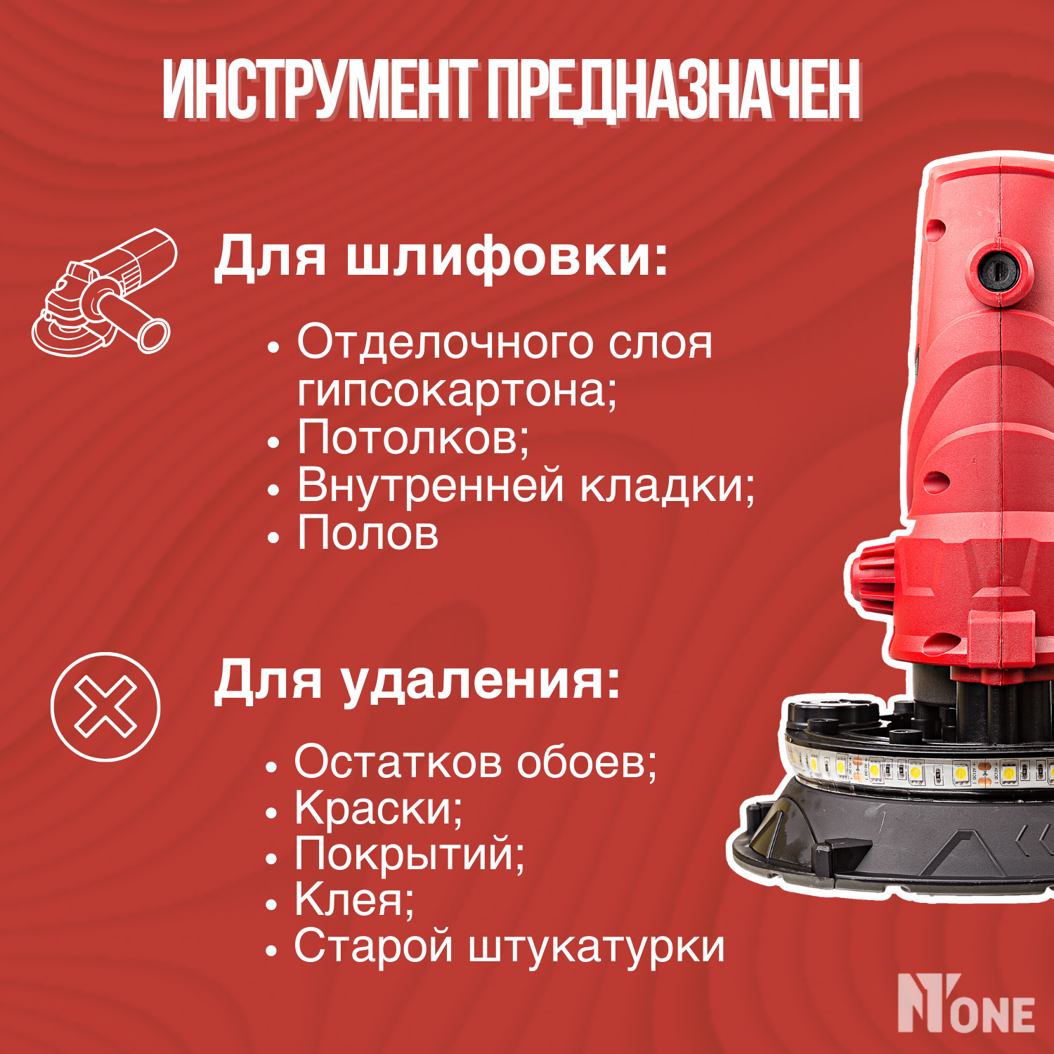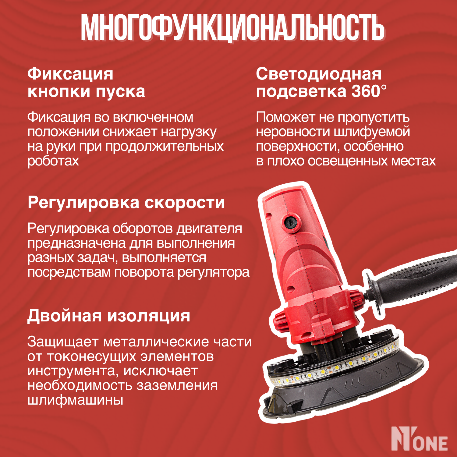 Шлифмашина для стен ручная NUMBER ONE DMJ950-SS1 900Вт, подсветка, диск 180мм. интересное: