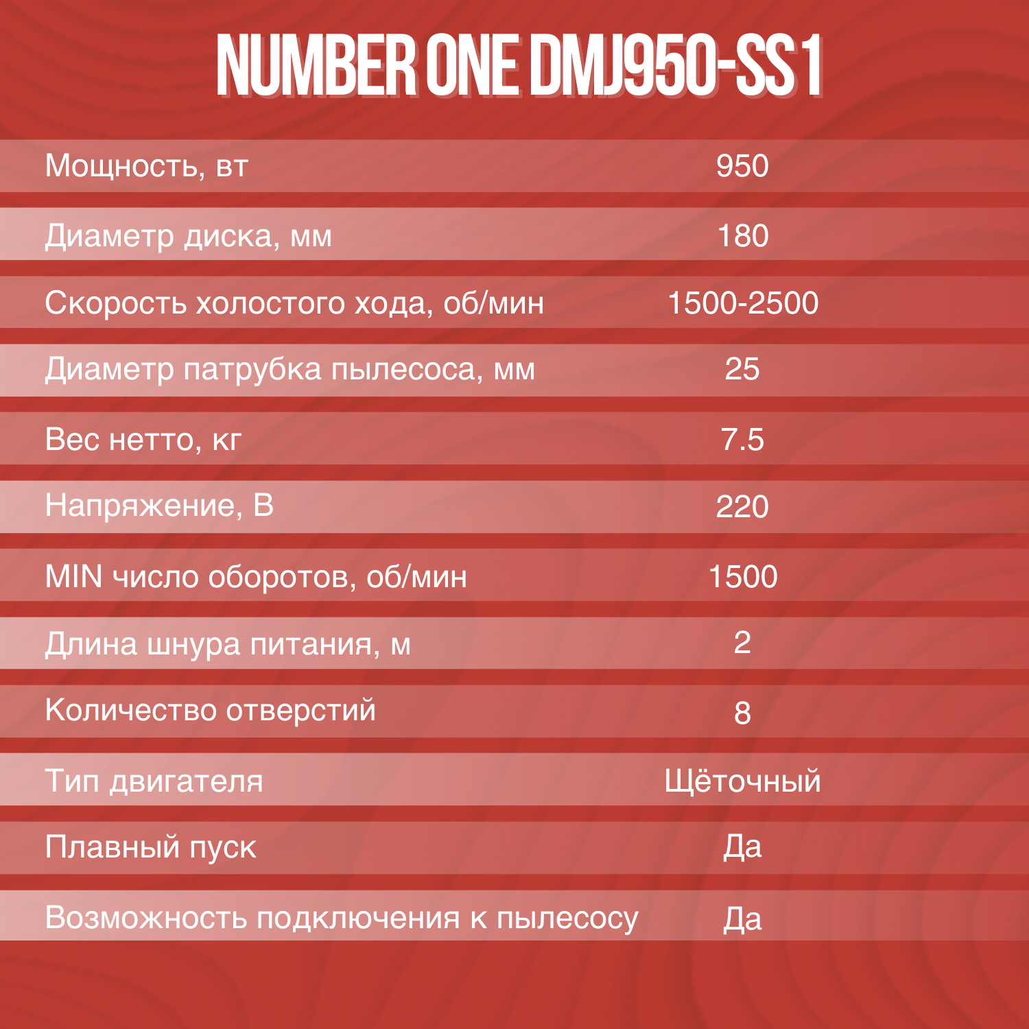 Купить Шлифмашина для стен ручная NUMBER ONE DMJ950-SS1 900Вт, подсветка, диск 180мм.