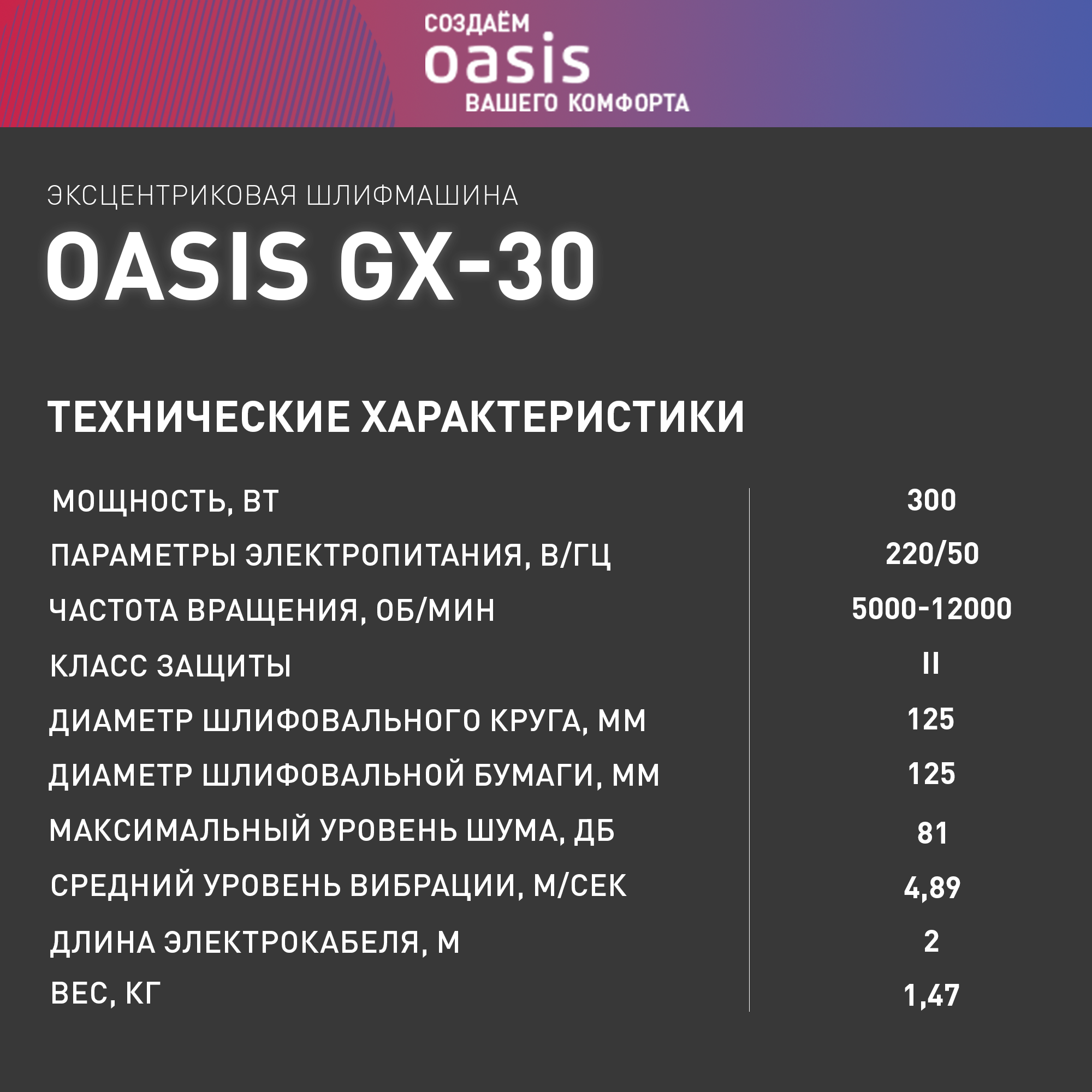 ЭШМ Oasis GX-30 Эксцентриковая шлифмашина