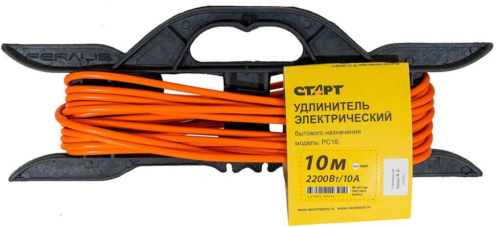 Удлинитель на раме Старт SG 1х10/РС16, 1 розетка, без заземления, 2 x 0,75 мм², 10 м, оранжевый