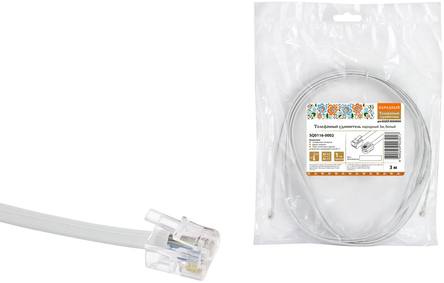 Телефонный удлинитель народный 3м, белый, TDM SQ0116-0002 (10 шт.) интересное: