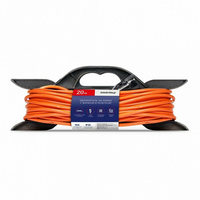 Силовой удлинитель на рамке 20 метров, оранжевый, с вилкой и розеткой, 2х1,0 мм2, IP20 интересное: