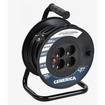 Купить Iek удлинители силовые WKP20-16-04-20-G Катушка УК20 с т з 4 места 2P+PE 20м 3х1,5мм2 GENERICA
