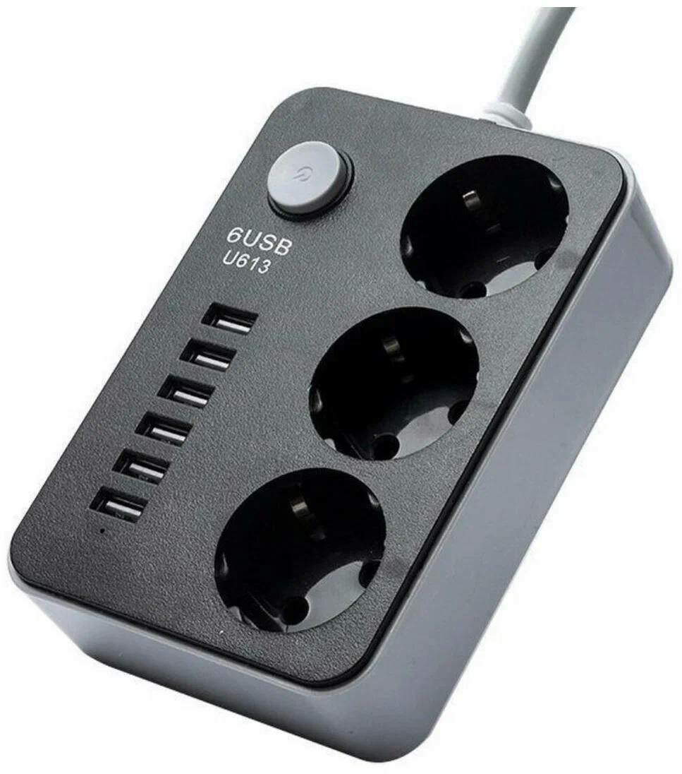 Купить Многофункциональный сетевой фильтр LP3631 на 6 USB + 3 розетки / "умная зарядка" / 2 метра