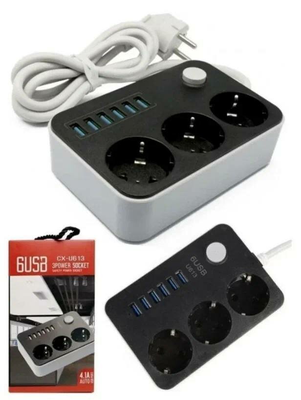 Многофункциональный сетевой фильтр LP3631 на 6 USB + 3 розетки / "умная зарядка" / 2 метра интересное: