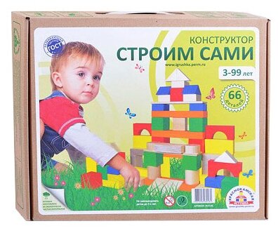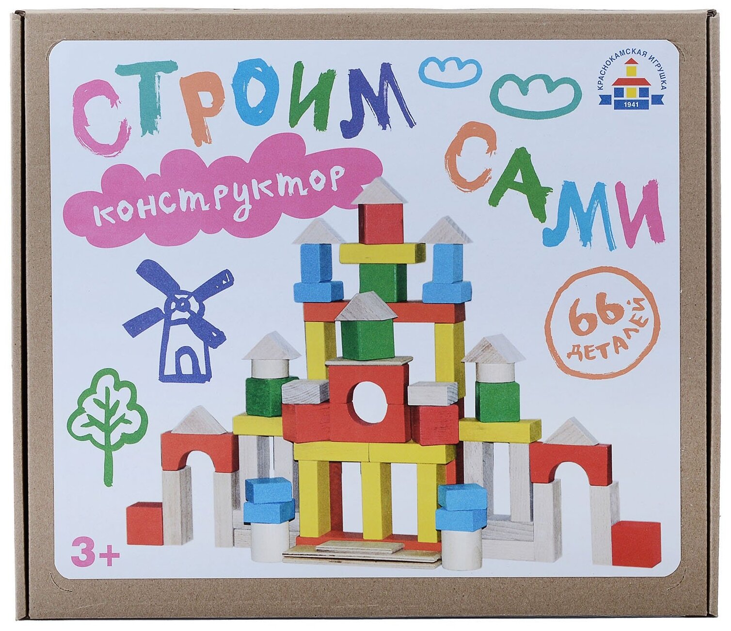 Деревянные Краснокамская игрушка Конструктор «Строим сами», 66 деталей