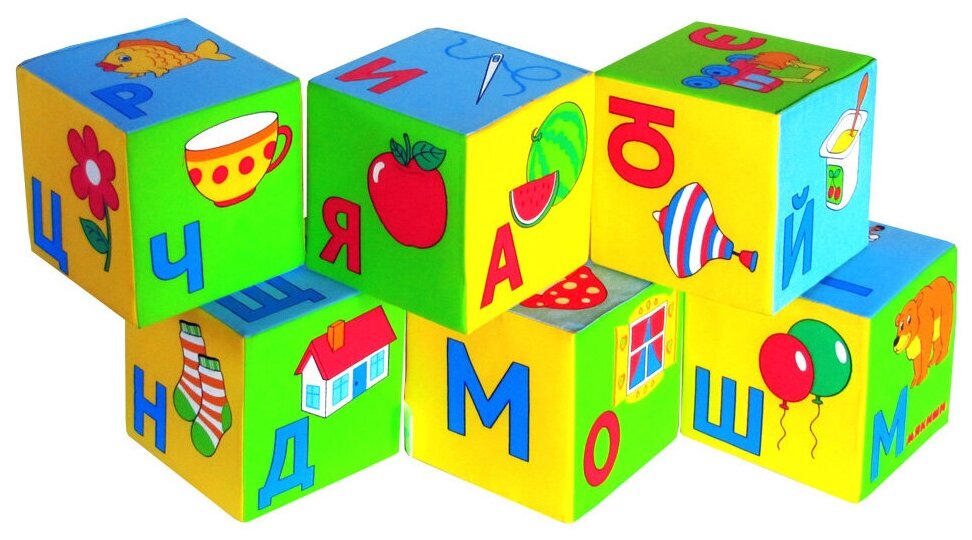 Набор развивающих мягких кубиков «Азбука в картинках», 6 штук