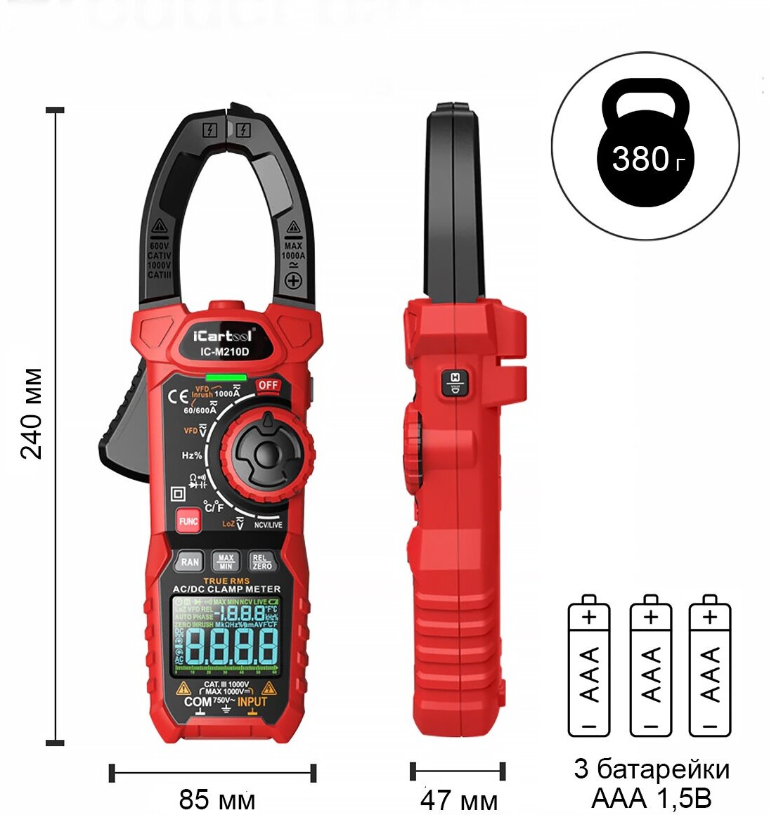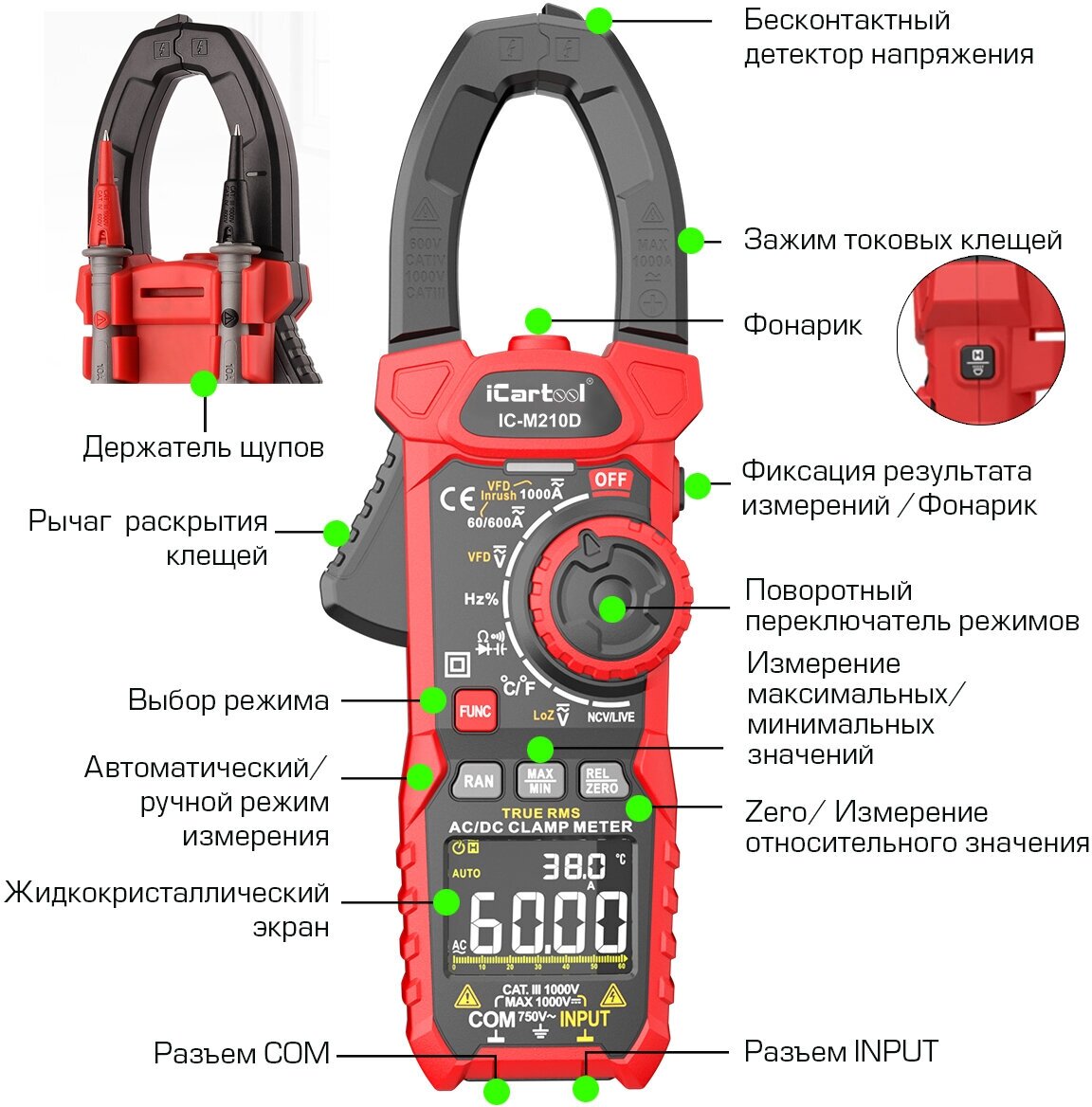 Токовые клещи iCartool IC-M210D интересное: