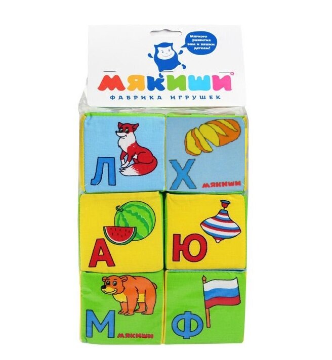 Мякиши Набор развивающих мягких кубиков «Азбука в картинках», 6 штук