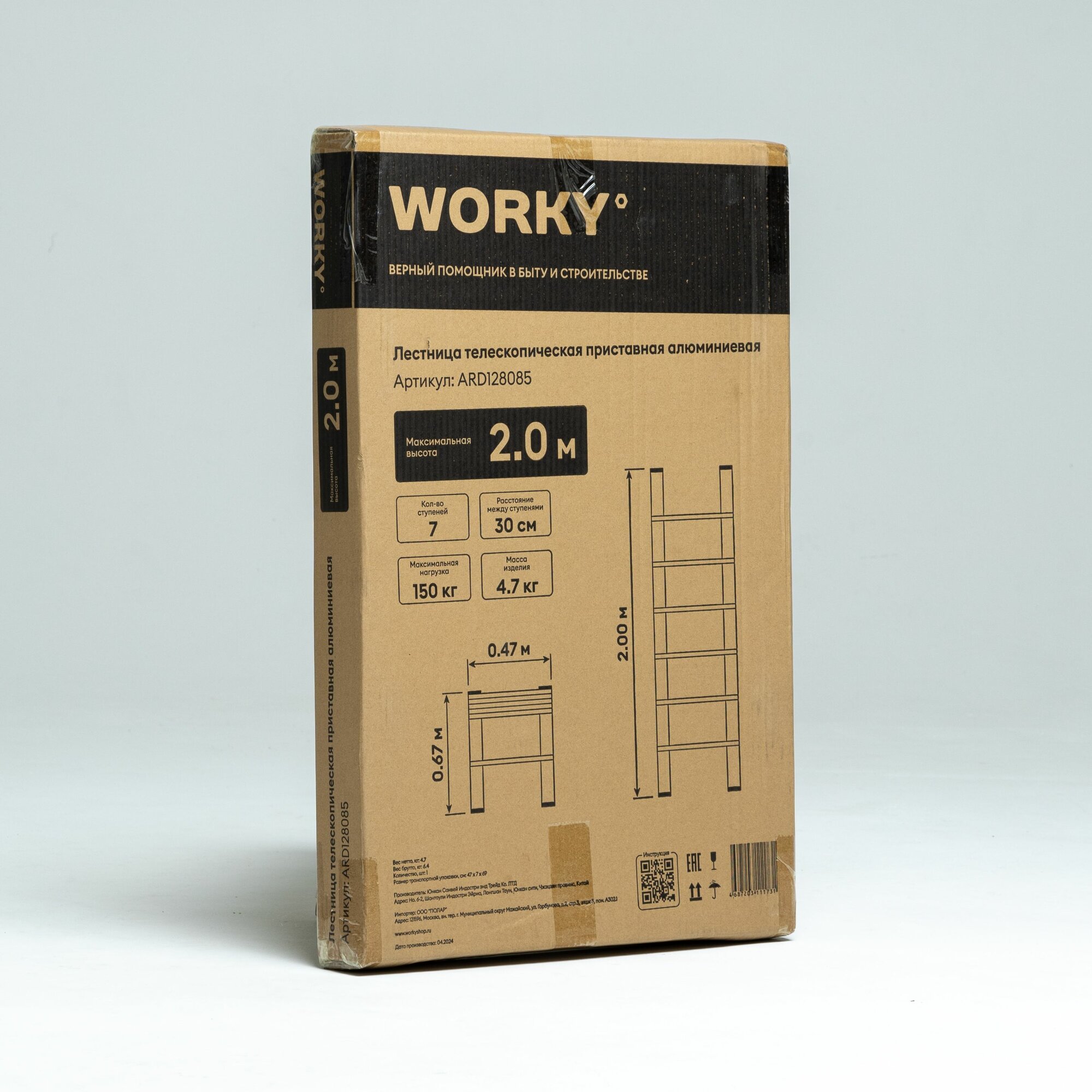 Лестница телескопическая WORKY 2 м, 7 ступеней