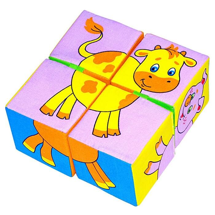 Игрушки из ткани Мякиши Развивающие кубики «Собери картинку. Домашние животные»