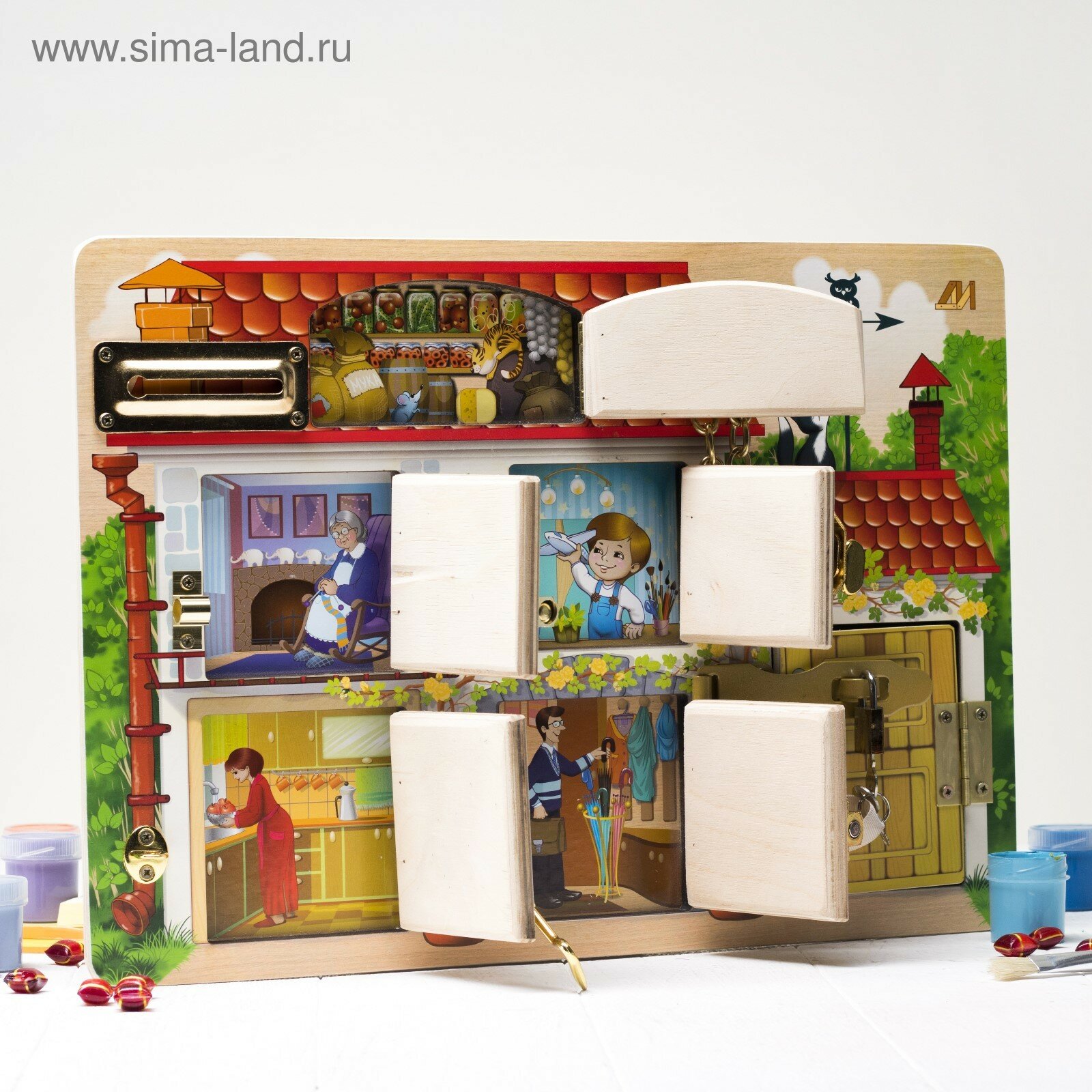 Купить Бизиборд «Домик с замочками»