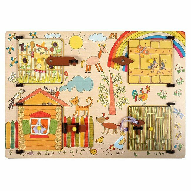 | Отзыв: | У ребёнка на занятиях по Монтессори был такой бизиборд, решила купить и домой. Очень качественный и интересный. Животные за дверками похожи на реальных, а то в некоторых игрушках рисуют каких то непонятных инопланетян)) разные замочки, сильный магнит на удочке. Ребёнок занимается с удовольствием. |