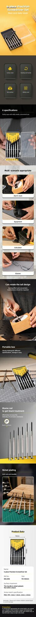 Набор прецизионных отверток Deli из 6 предметов, Cr-V