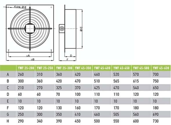 ВанВент Вентилятор Ванвент YWF2T-250BF осевой в квадратном фланце (1330 m/h, 380 V) интересное: