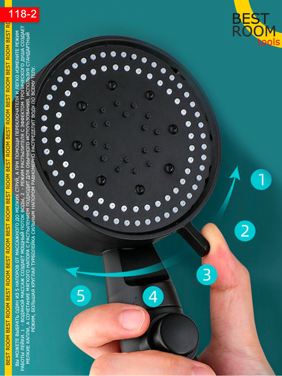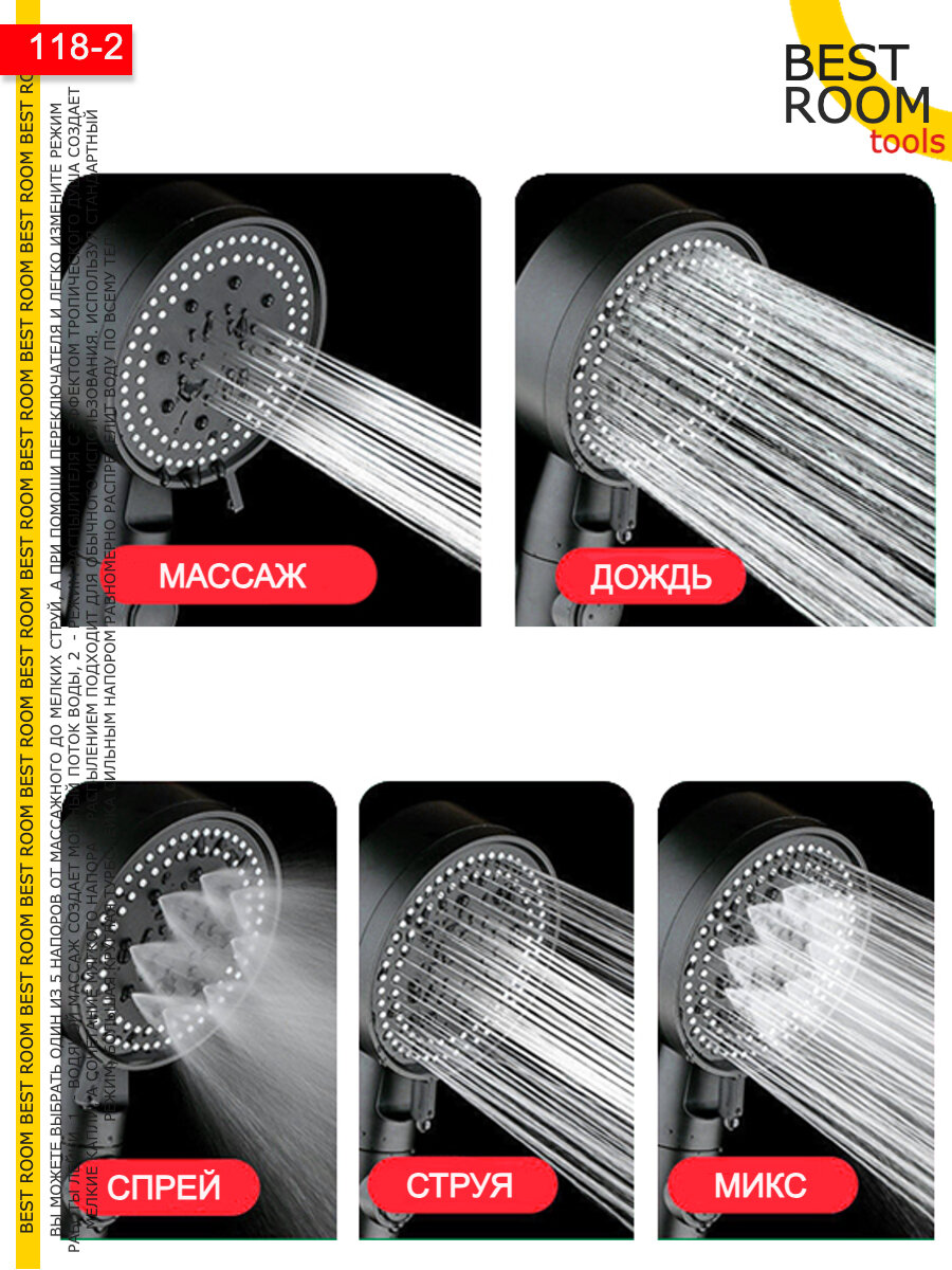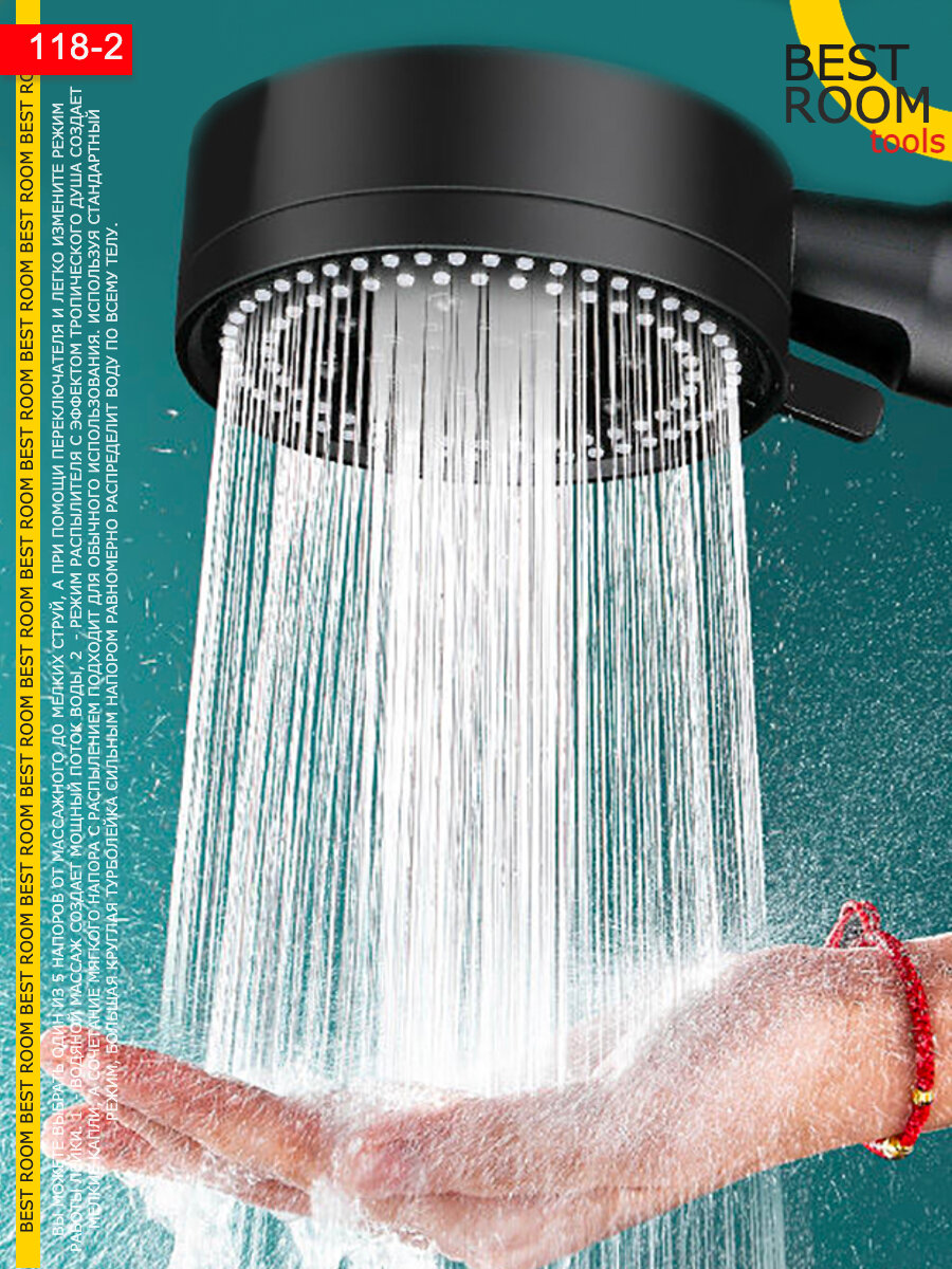 Лейка для душа водосберегающая, душевая лейка с режимами массажная черная интересное: