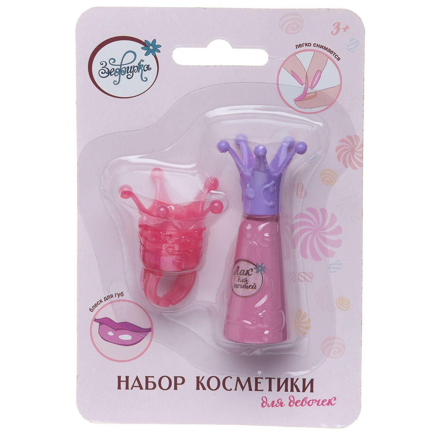 Купить Набор косметики для девочек Зефирка "сказочная" серия. Лак для ногтей и блеск для губ "Розовый фламинго".