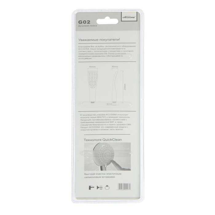 Душевая лейка Accoona G02, 1 режим, корпус пластик, хром интересное: