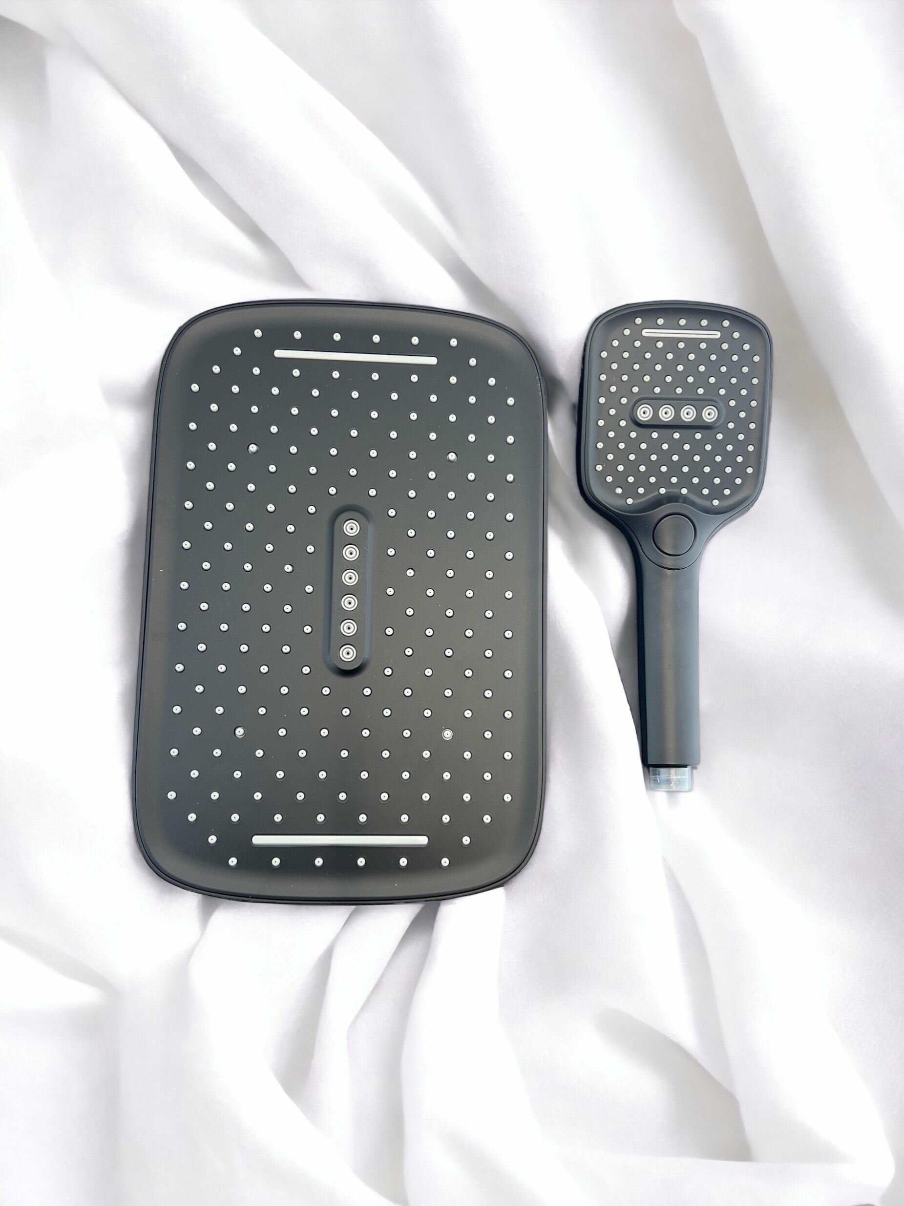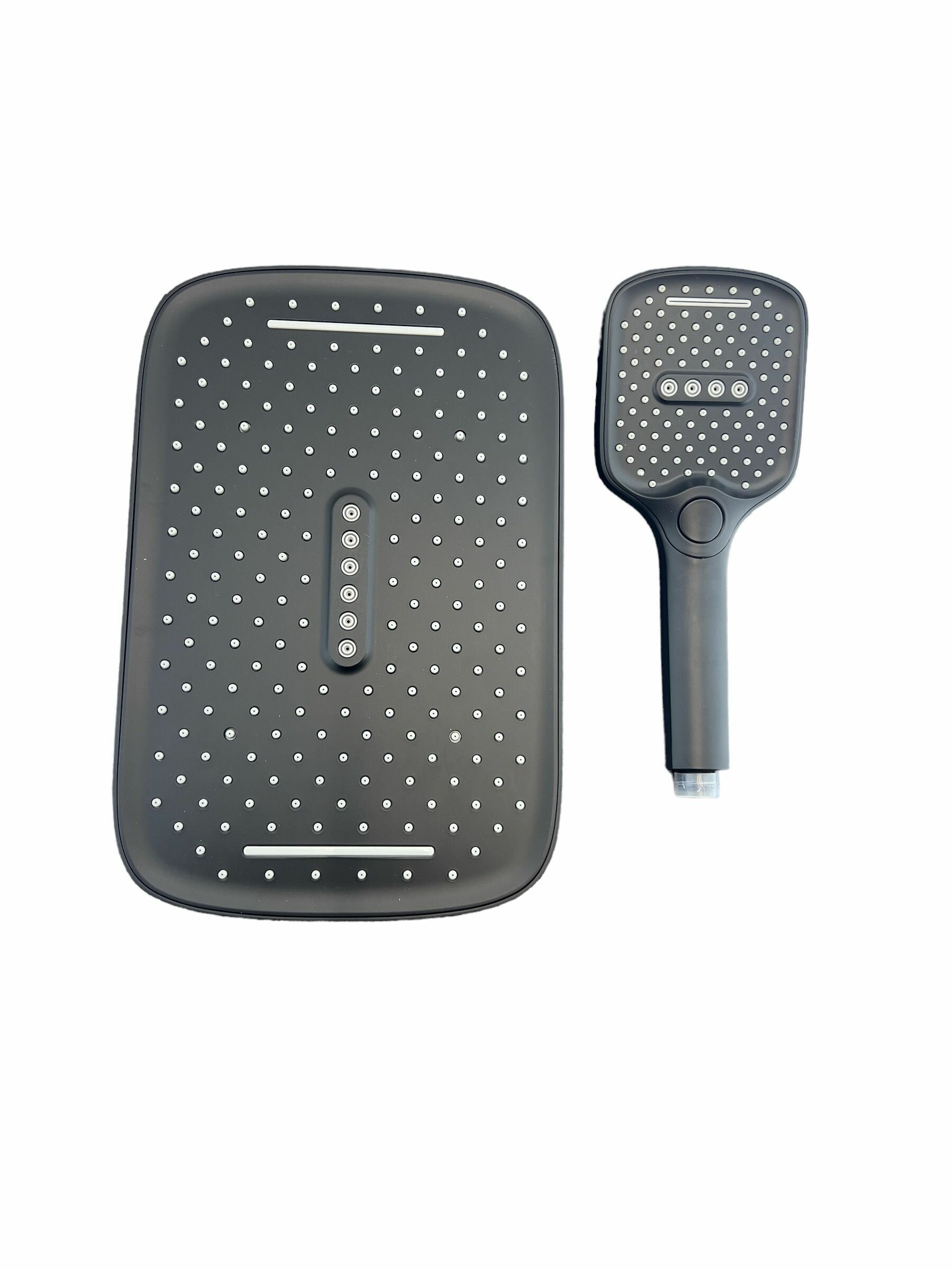 Комплект душевая лейка 10х25 см и тропическая лейка 32х21 см черная интересное:
