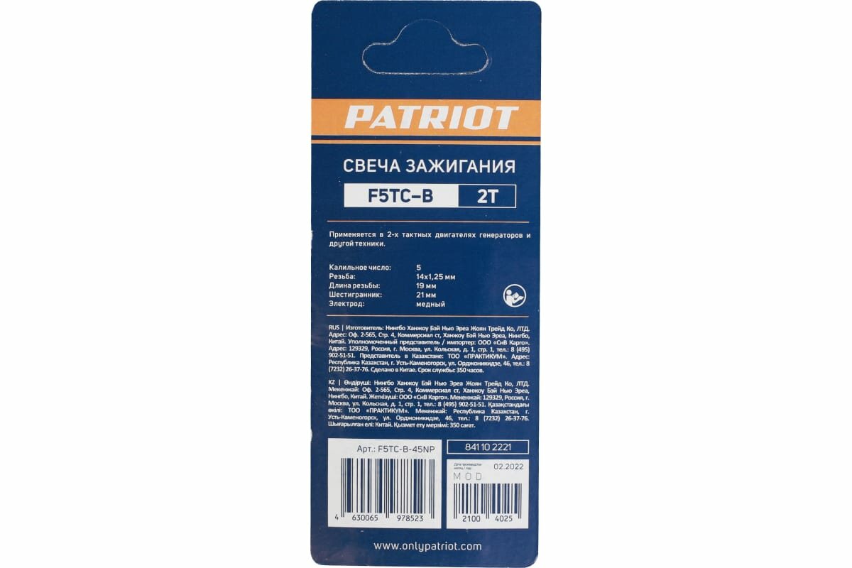 Свеча для 2-тактных двигателей F5TC-B Patriot (1165) 841102221 интересное: