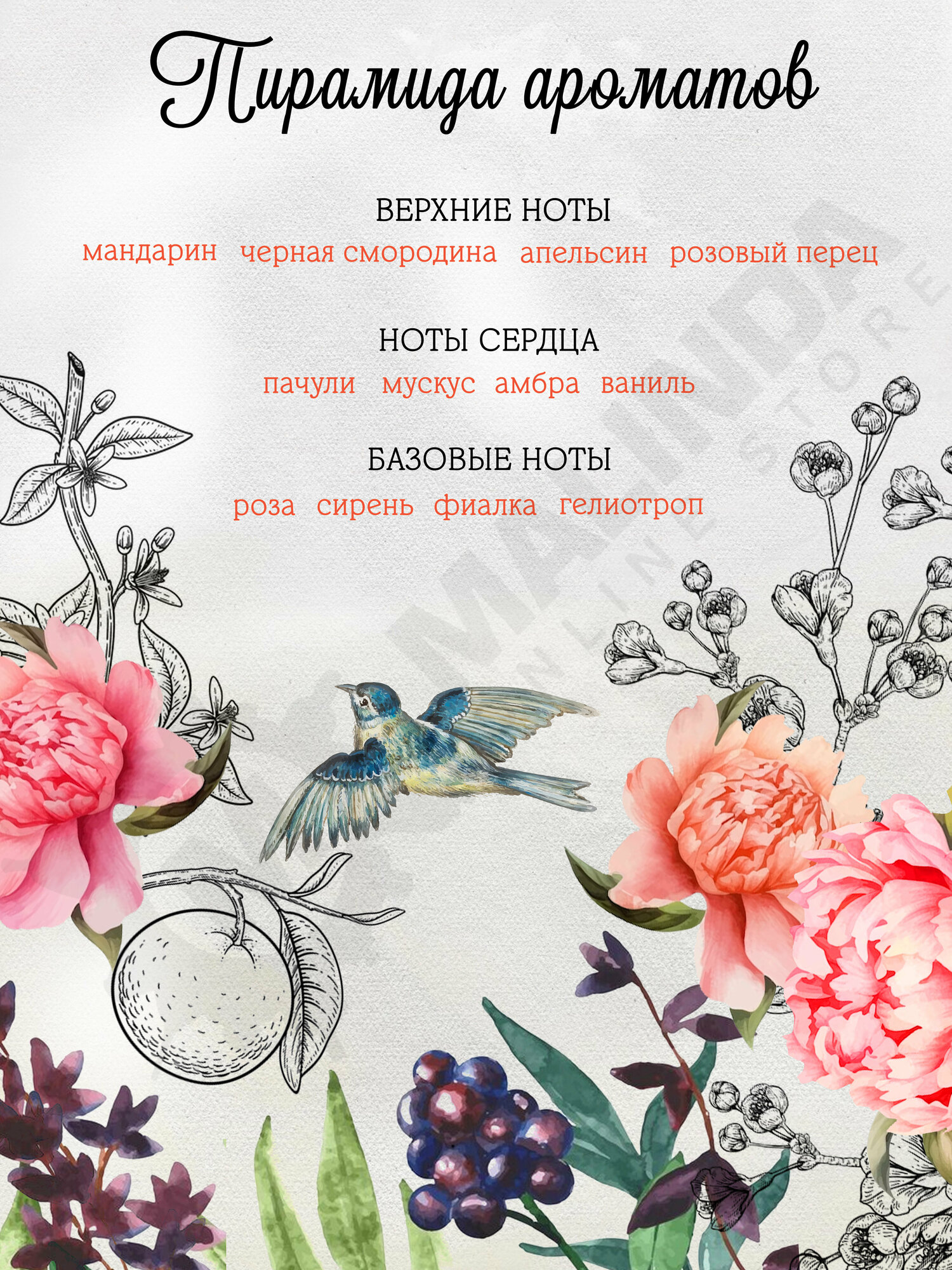 | Верхние ноты | апельсин, мандарин, перец, чёрная смородина |