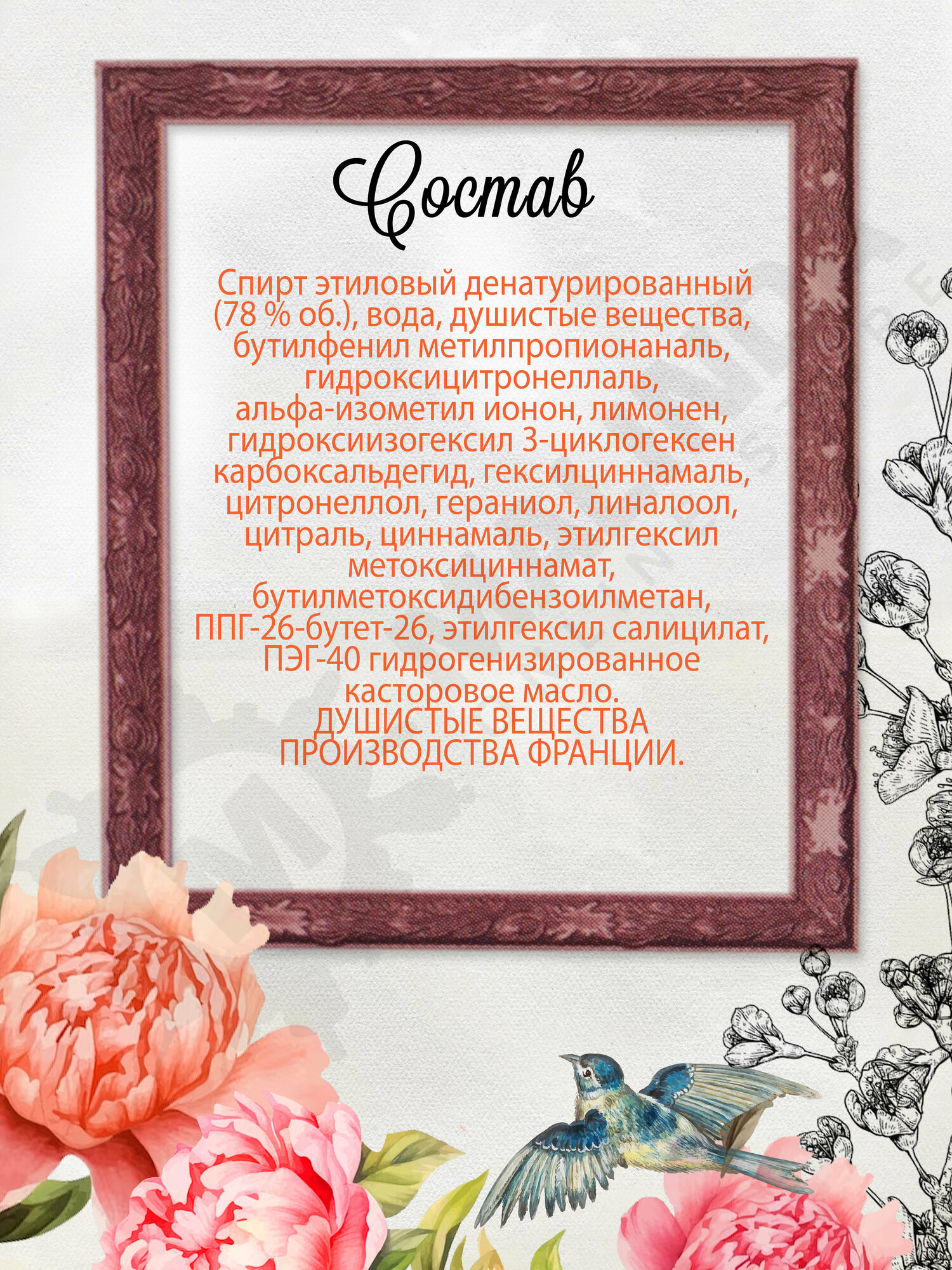 | Средние ноты | гелиотроп, роза, сирень, фиалка |
