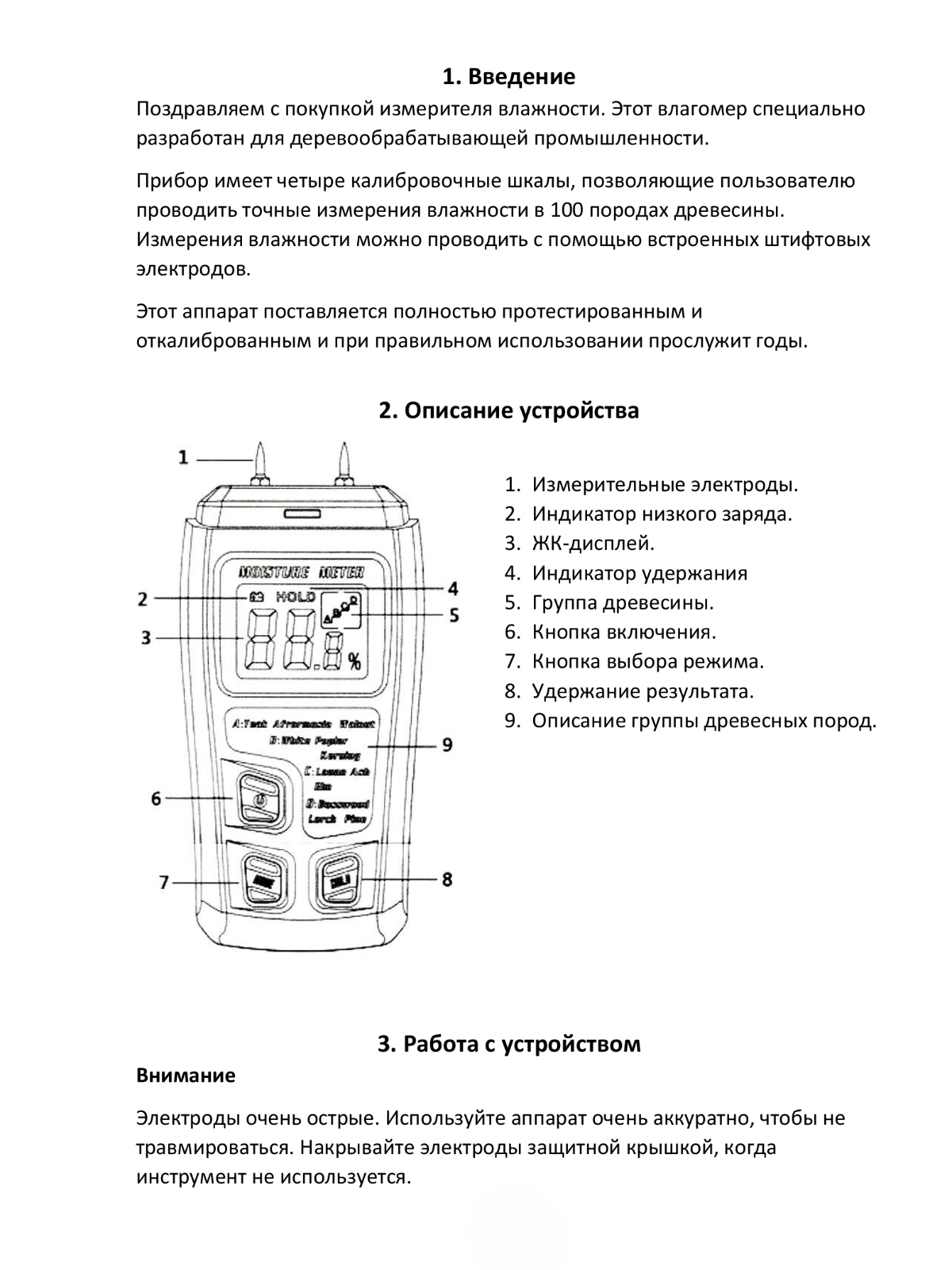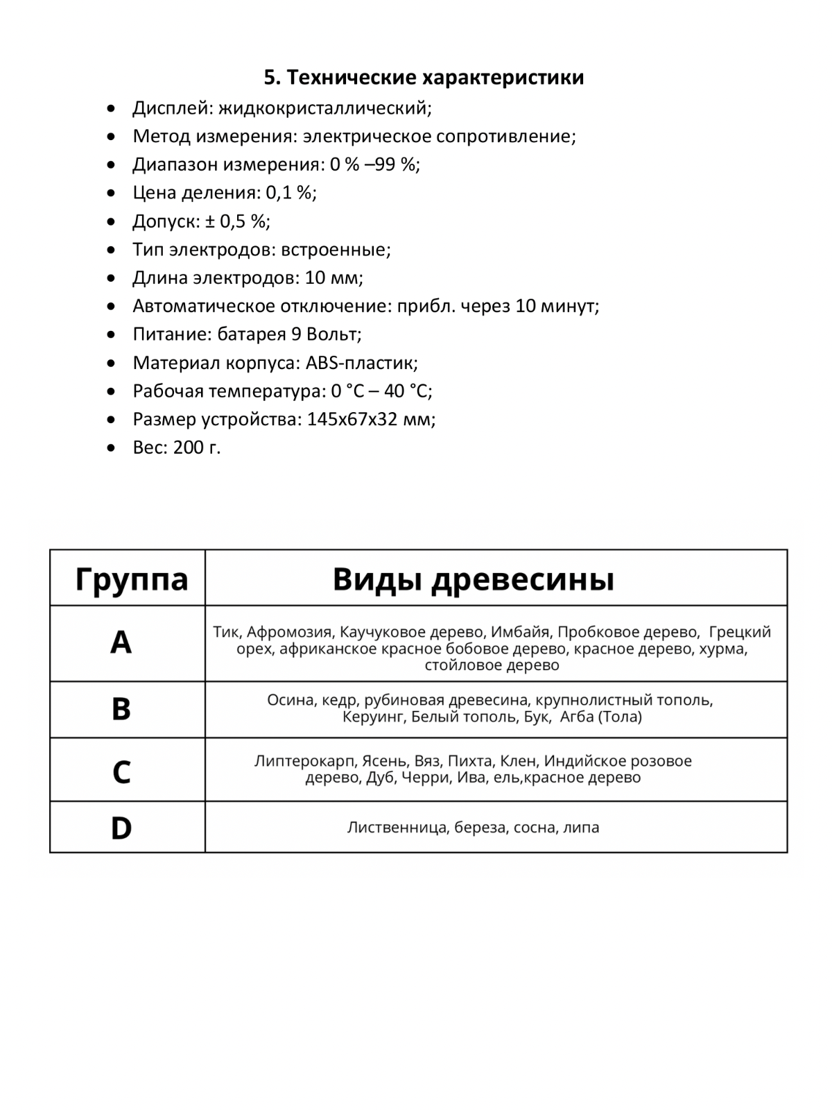 высокая точность измерения. Есть 4 режима для каждой группы древесины. |